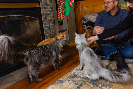 Through this research, we decided as a family to raise and breed Maine Coon cats. It truly is a family affair and a labor of love. Our breeding cats are our pets. We raise and breed them in our home, which means we are able to give our cats and kittens constant love and attention. With all of the time we spend with them, they are very well socialized. This is something that we pride ourselves in and it does show in our cats and kittens. We are a CFA registered cattery. Our overall goal is to provide you and your family with the best Maine Coon kitten or cat that we can. We enjoy educating and sharing what we have learned about the breed and want you to love and enjoy your kitten or cat as much as we do.